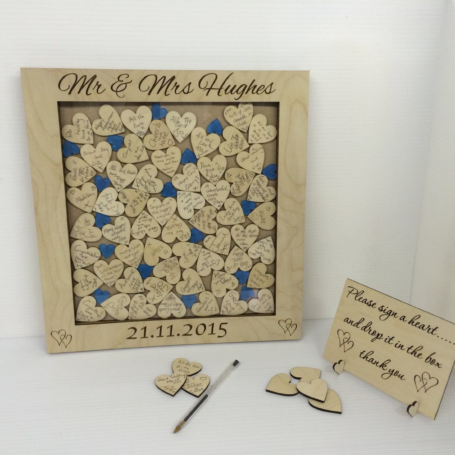 - 4cm x 4cm large enough to write on & ‘Please sign a heart’ sign