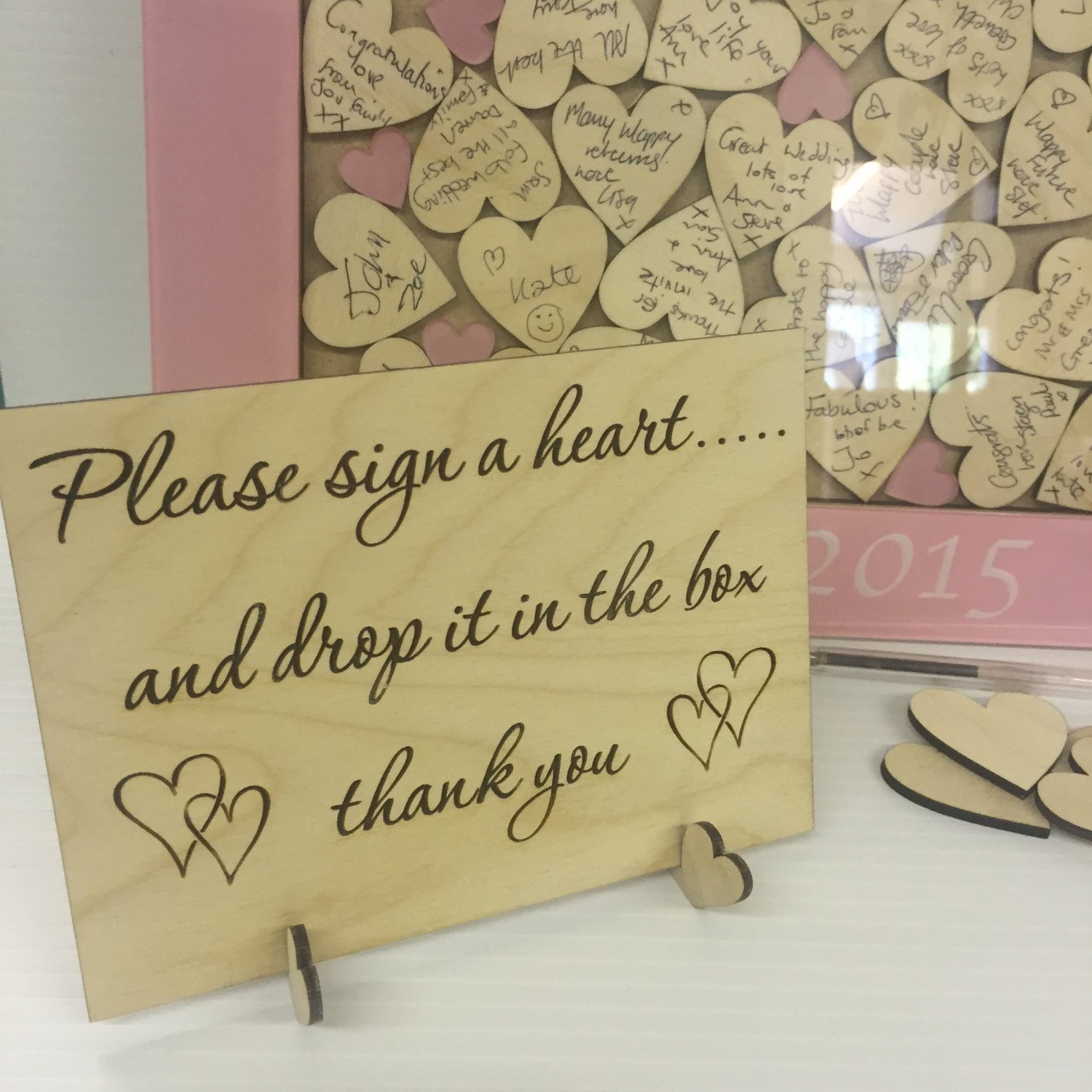 - 4cm x 4cm large enough to write on & ‘Please sign a heart’ sign